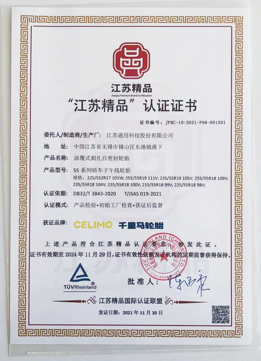近日,通用股份旗下千里馬品牌涂覆式刺扎自密封輪胎,榮獲 江蘇精品認證。通用股份也是本次全省唯一榮獲江蘇精品認證的輪胎企業(yè)。