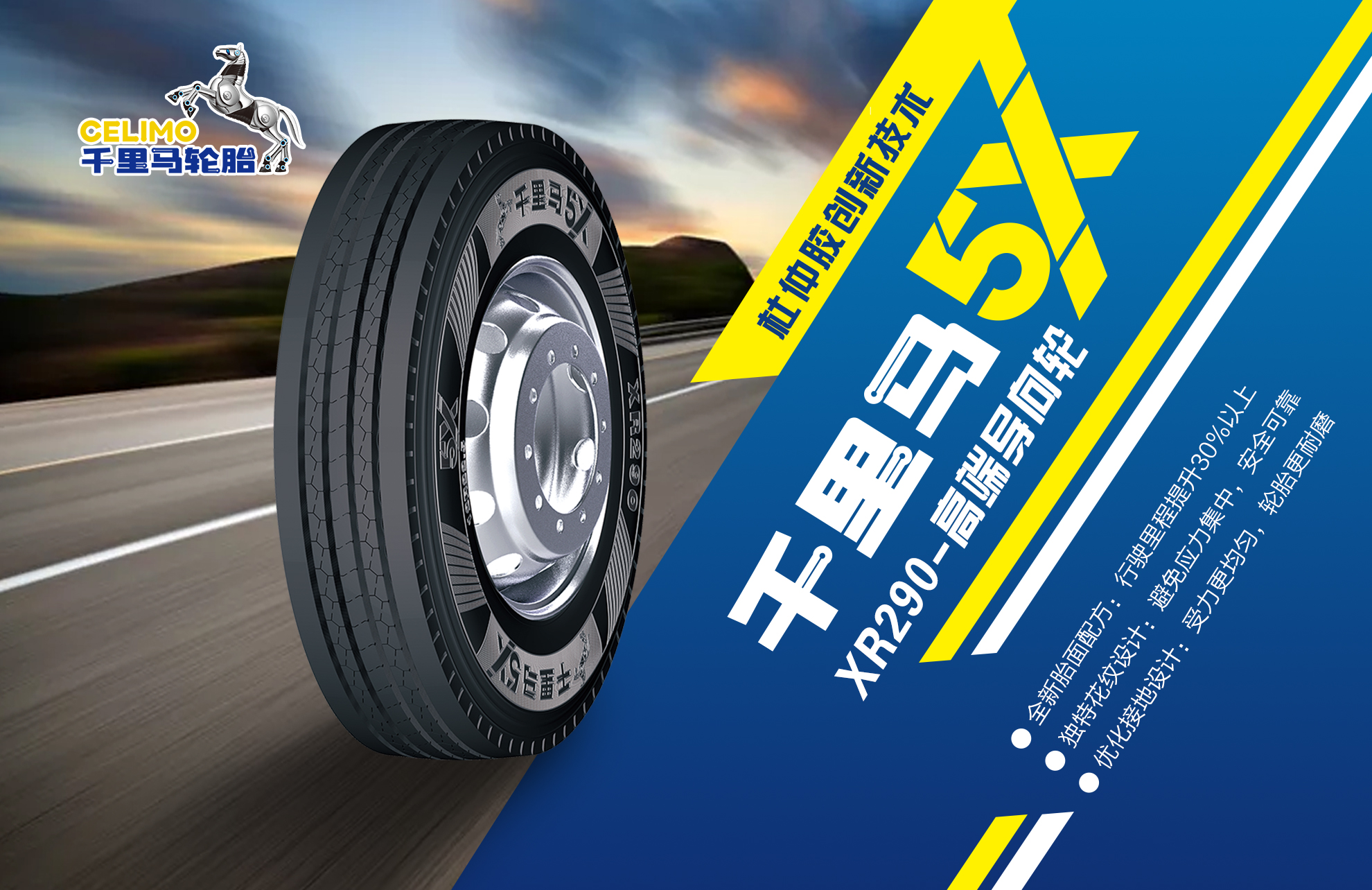 近日,通用股份最新研發(fā)成果——全鋼中長途真空胎千里馬5X XR290即將隆重推出,創(chuàng)新應用杜仲膠配方,大幅提升輪胎耐磨性能,志在挑