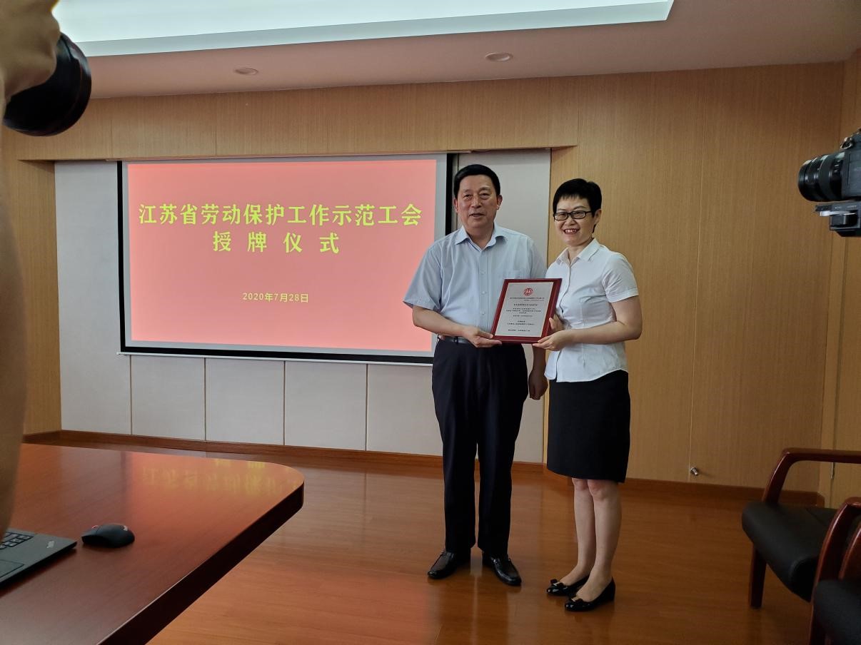 (無錫市委常委、市總工會主席陳德榮代表江蘇省總工會為紅豆集團工會授牌) 7月28日,在無錫錫山區(qū)總工會勞動保護工作匯報會上,無錫