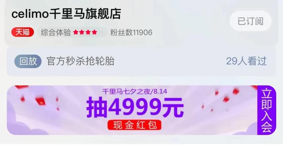 即日起至8月14日20:00點前,消費者只要關(guān)注紅豆集團旗下品牌如“celimo千里馬”天貓官方旗艦店,成為會員并消費(不限金額)即可獲得4999元超大紅包的抽取資格。